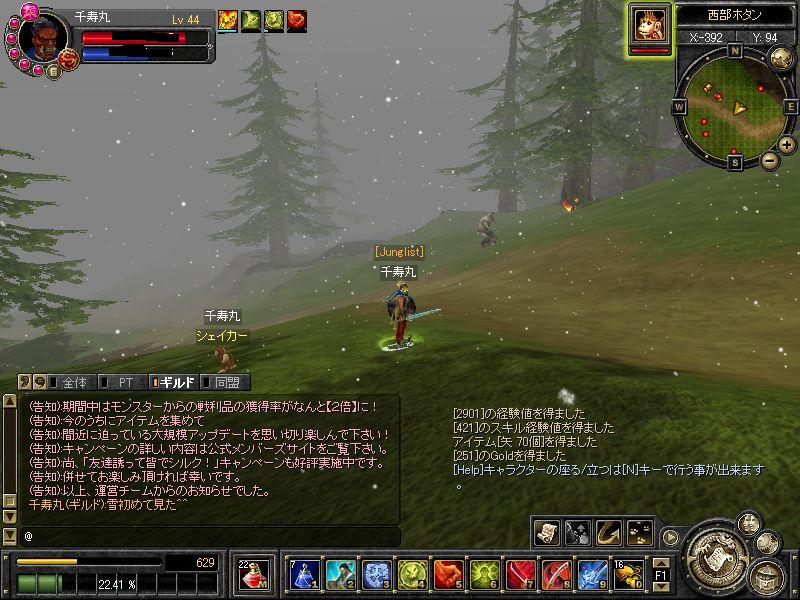 そんなこんなで狩りをしていたら・・・雪が降ってきました☆