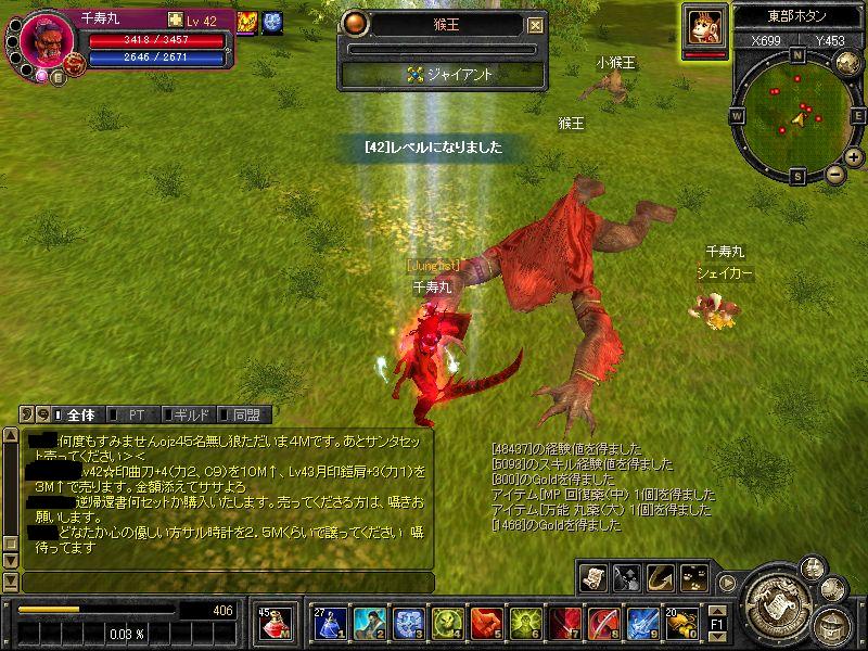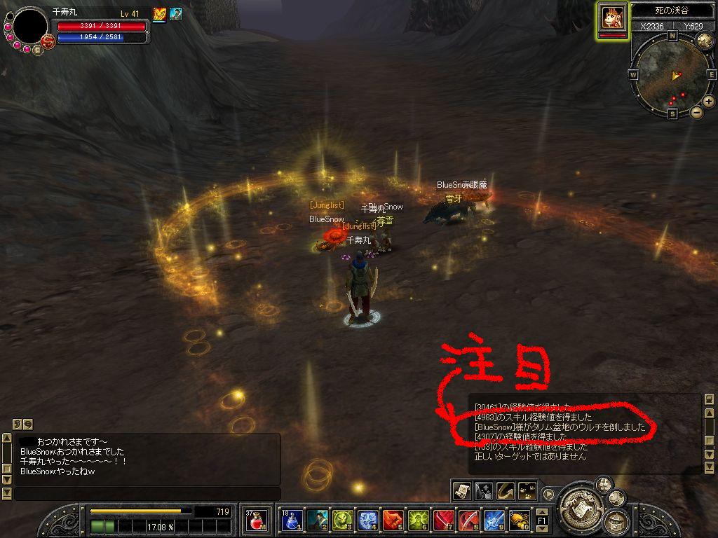 俺をJunglistに勧誘した人で、うちで唯一の高LV者w( ̄▽ ̄;)wワオッ!!この前死の渓谷で一人狩りをしてたらウルチに遭遇(><)その時に助けに来てくれて、ウルチ退治の名乗りを上げた方です♪⌒ヽ(*゜O゜)ノ スゴイッ!!!