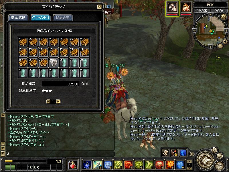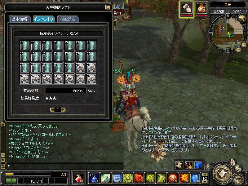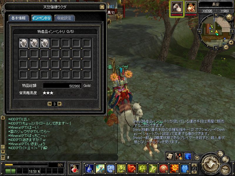 INしてることを確認してササいれたら快諾してくれて、とりあえず長安から一人で馬で走っていきました^^