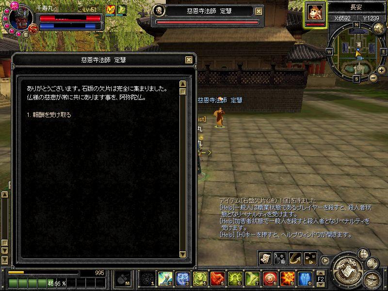 実は、長安のクエが一つ終わってなかったのです><