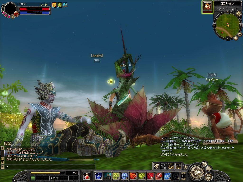 挨拶も早々に、居場所を聞くと狩りの最中。いきなり座標を教えろだの失礼なことを散々いってやっと見つけました^^